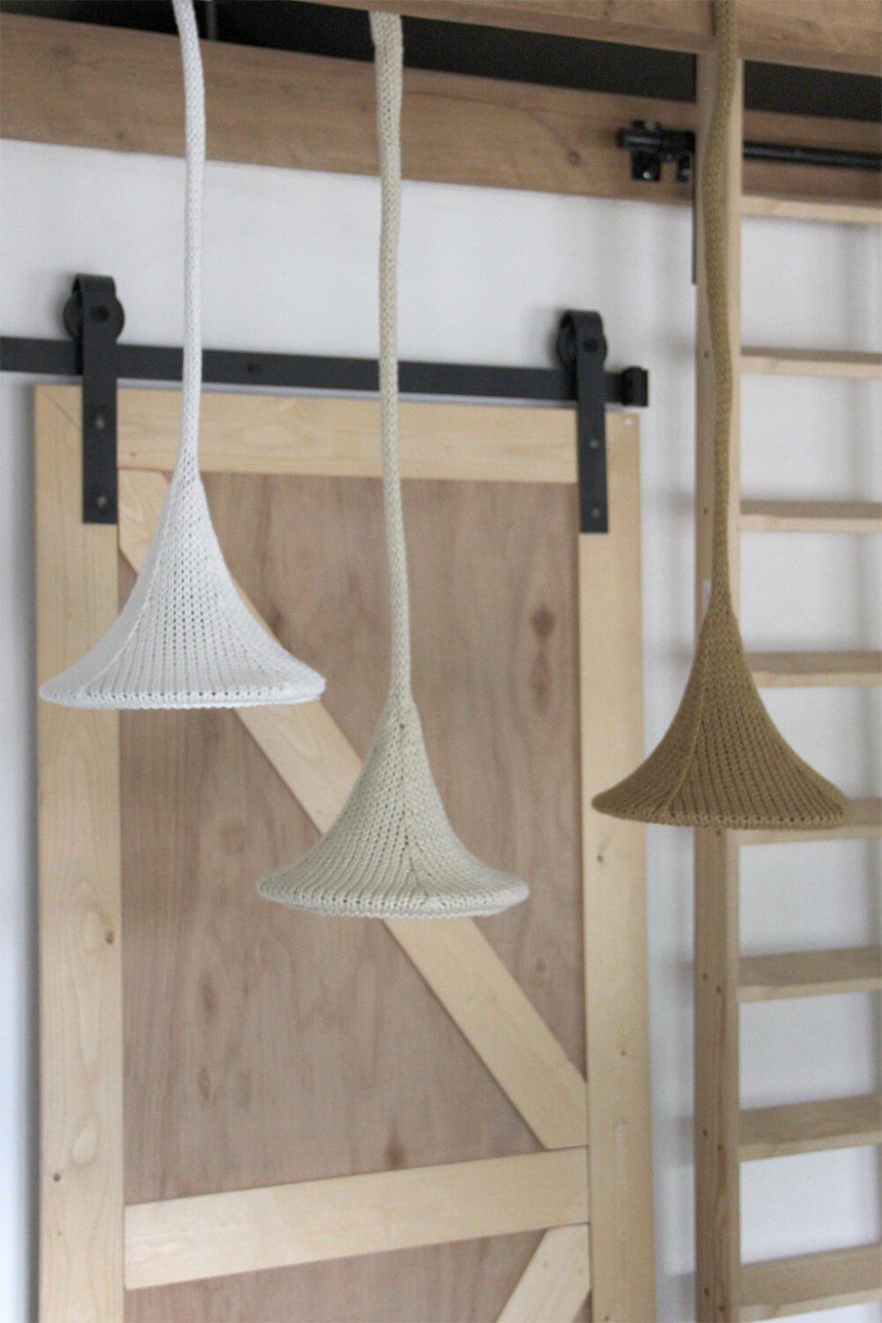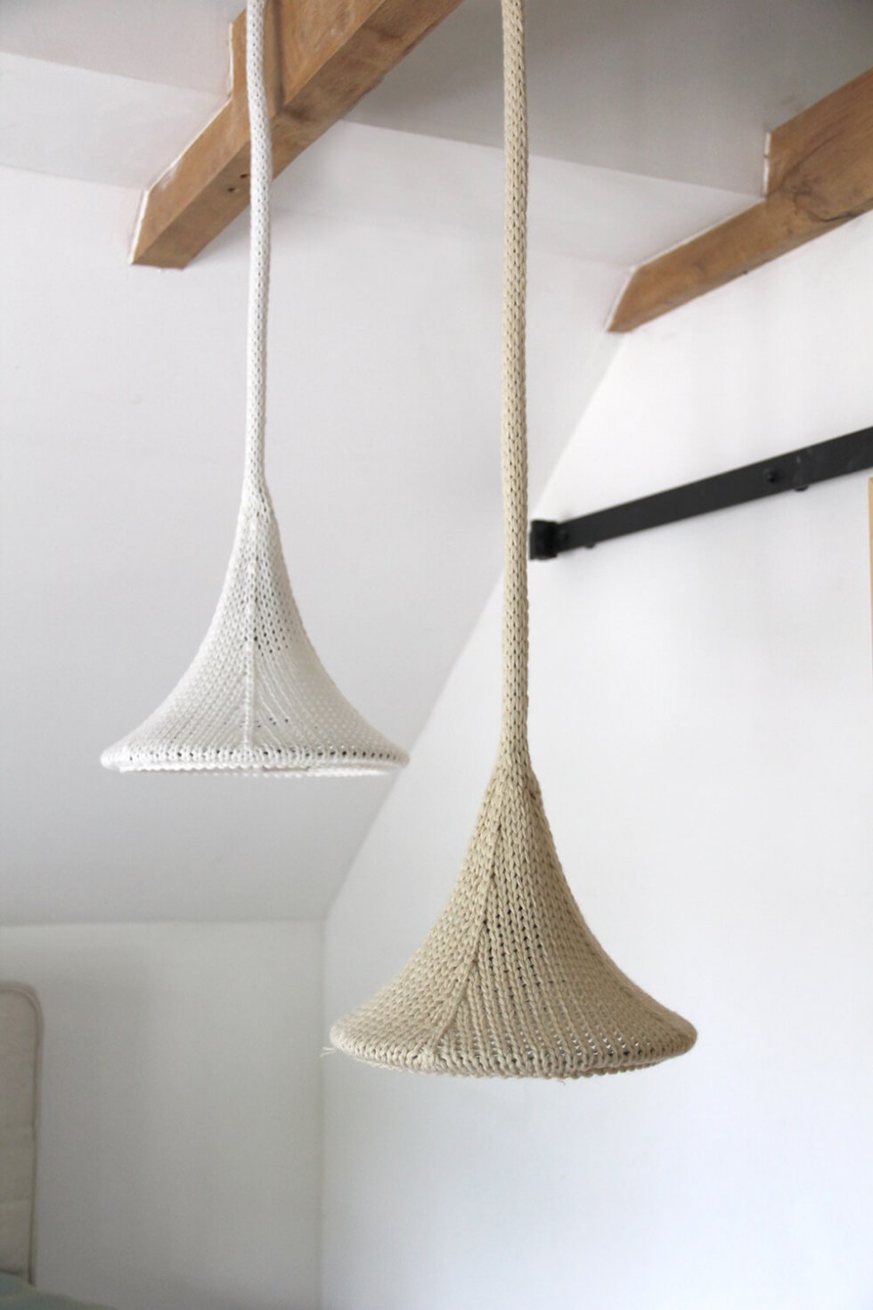 Stoere en eigenwijze gebreide lampenkap. verkrijgbaar in 4 eigentijdse kleuren.